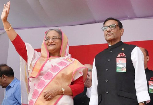 বিনা প্রতিদ্বন্দ্বিতায় টানা নবমবারের মতো আওয়ামী লীগের সভাপতি নির্বাচিত হয়েছেন প্রধানমন্ত্রী শেখ হাসিনা। সাধারণ দ্বিতীয় মেয়াদে সাধারণ সম্পাদক নির্বাচিত হয়েছেন সড়ক পরিবহন ও সেতুমন্ত্রী ওবায়দুল কাদের৷শনিবার রাজধানীর ইঞ্জিনিয়ার্স ইনস্টিটিউশনে আওয়ামী লীগের কাউন্সিল অধিবেশনে সারা দেশ থেকে আসা ৭ হাজার ৩৩৭ কাউন্সিলরের ভোটে তারা নির্বাচিত হন। এর আগে পূর্বের কমিটি বিলুপ্ত ঘোষণা করে তারা কাউন্সিলরদের জন্য নির্ধারিত আসনে গিয়ে বসেন।এবার কাউন্সিলে ৩ সদস্যের নির্বাচন কমিশন কাজ করেছে। নির্বাচন কমিশনার ছিলেন অ্যাডভোকেট ইউসুফ হোসেন হুমাহুন, সদস্য ছিলেন ড. মসিউর রহমান এবং প্রফেসর সাঈদুর রহমান৷সভাপতি পদে মনোনয়ন আহ্বান করা হলে আর কোনো প্রতিদ্বন্দ্বী না থাকায় শেখ হাসিনা টানা নবমবারের মত সভাপতি নির্বাচিত হন। সব কাউন্সিলরের পক্ষ থেকে শেখ হাসিনার নাম প্রস্তাব করেন আবদুল মতিন খসরু এবং সমর্থন করেন পীযুষ কান্তি ভট্টাচার্য্য।এরপর সাধারণ সম্পাদকের নাম প্রস্তাব চাওয়া হয় কাউন্সিলরদের কাছ থেকে। জাহাঙ্গীর কবির নানক ওবায়দুল কাদেরের নাম প্রস্তাব করেন এবং আবদুর রহমান তার প্রস্তাব সমর্থন করেন। তিনিও বিনা প্রতিদ্বন্দ্বিতায় নির্বাচিত হন।এর আগে পৌষের শীতকে উপেক্ষা করে কাউন্সিলে ৭ হাজার ৩৩৭ জন কাউন্সিল এসে জড়ো হন ইঞ্জিনিয়ার্স ইনস্টিটিউশনে। নতুন নেতৃত্বের নির্বাচন করার আগে বিভিন্ন জেলা থেকে আগত কাউন্সিলরা বক্তব্য রাখেন।কাউন্সিল অধিবেশন উদ্বোধন অনুষ্ঠানে শেখ হাসিনা বলেন: বঙ্গবন্ধু আদর্শ মেনে আওয়ামী লীগের সকল নেতাকর্মীকে রাজনীতি করতে হবে। সবাইকে বঙ্গবন্ধুর অসমাপ্ত আত্মজীবনী পড়তে হবে এবং সে জায়গা থেকে শিক্ষা নিয়ে আওয়ামী লীগের নেতাকর্মীদের রাজনীতি করতে হবে। আমি সামনে আরেকটি বই প্রকাশ করতে যাচ্ছি, বঙ্গবন্ধুকে নিয়ে গোয়েন্দা রিপোর্ট। তার বিরুদ্ধে কত অপপ্রচার ছিল, সব থাকবে সেখানে।’এবারের কাউন্সিলে শুরুতে সভাপতির বক্তব্যের পর সাধারণ সম্পাদক তার রিপোর্ট উপস্থাপন করেন। এরপর দলীয় ঘোষণাপত্র, দলীয় বাজেট এবং গঠনতন্ত্র পাস করা হয় কাউন্সিল থেকে।এবারের জাতীয় কাউন্সিলে আওয়ামী লীগের স্লোগান হচ্ছে, ‘শেখ হাসিনার নেতৃত্বে বঙ্গবন্ধুর স্বপ্ন পূরণে গড়তে সোনার দেশ, এগিয়ে চলেছি দুর্বার, আমরাই তো বাংলাদেশ’।