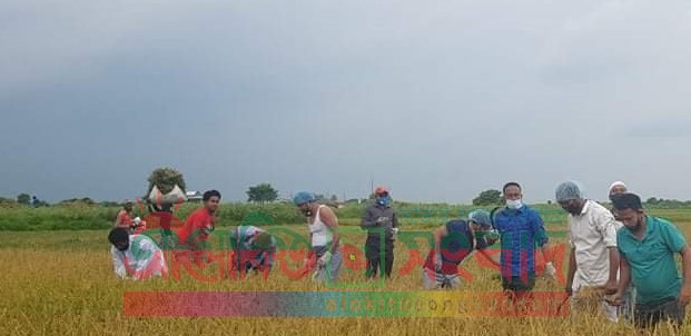শ্রীনগর (মুন্সীগঞ্জ) প্রতিনিধিঃ শ্রীনগরে আড়িয়ালবিলের এক কৃষকের ধান কেটে দিয়ে তার পাশে দাড়ালেন বাংলাদেশ বিকল্প যুবধারার কয়েকজন নেতাকর্মী। শুক্রবার সকাল থেকে দুপুর পর্যন্ত উপজেলার শ্যামসিদ্ধি ইউনিয়নের গাদিঘাট এলাকার আড়িয়লবিলের কৃষক বিল্লাল হোসেন তালুকদারের ৪৫ শতাংশ জমির ধান কাটেন তারা। এসময় ধান কাটায় অংশগ্রহন করেন কেন্দ্রীয় বিকল্প যুবধারার সভাপতি আসাদুজ্জামান বাচ্চু, স্থানীয় সাংসদ মাহী বি চৌধুরীর পিএ ওবায়দুল হক সোহাগ, এপিএস-২ গাজি শহিদুল্লাহ কামাল ঝিলু, কেন্দ্রীয় বিকল্প যুবধারার সহ-সভাপতি জাহাঙ্গীর আলম নিশি, যুগ্ন-সম্পাদক আব্দুল্লাহ আল মামুন, শ্রীনগর বিকল্প যুবধারার যুগ্ন-সম্পাদক জিল্লুর রহমান, যুবধারা নেতা আমিনুল ইসলাম শ্যামলসহ অনেকে। যুবধারার নেতারা জানান, করোনার প্রভাবে এই অঞ্চলে শ্রমিক সংকটকালীন সময়ে একজন কৃষকের ধান কেটে তারা সহযোগিতার হাত বাড়িয়ে দিয়েছেন। তবে দেশের এই ক্রান্তিলগ্নে এই ধারা অব্যাহত থাকবে বলে জানান তারা।