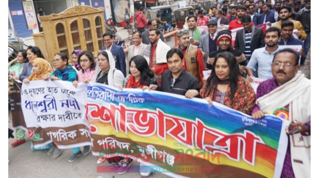 মুন্সীগঞ্জের বিভিন্ন সিমেন্ট ফ্যাক্টরি ও শিল্পকারখানার বর্জ্যে ধলেশ্বরী নদী দূষণ ও দখলের প্রতিবাদে এবং ‘ধলেশ্বরী নদী বাঁচাও’ স্লোগানে দুই দিনের প্রতিবাদী কর্মসূচি শুরু হয়েছে। কর্মসূচির প্রথমদিন শনিবার মুন্সীগঞ্জের নাগরিক সমাজ একটি শোভাযাত্রা বের করে।