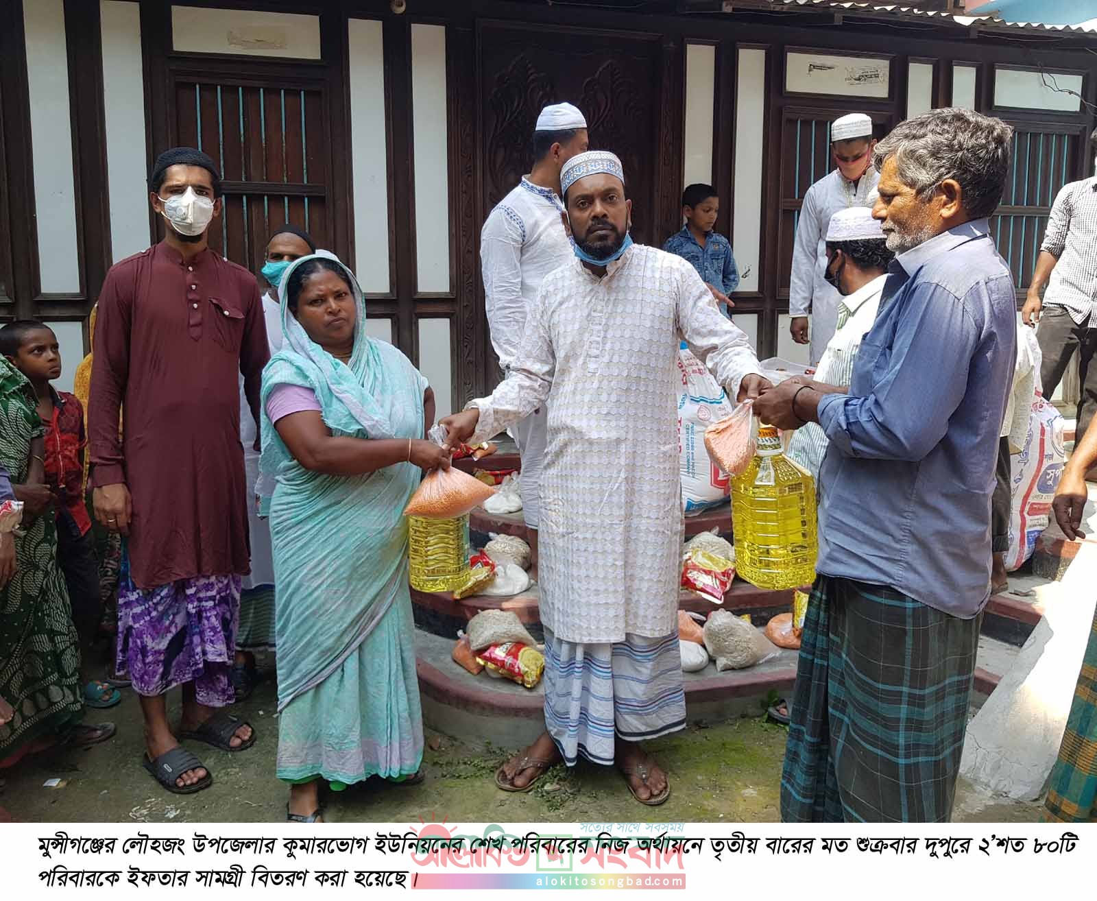 শ্রীনগর (মুন্সীগঞ্জ) প্রতিনিধিঃ করোনাভাইরাস প্রার্দুুভাবের কারণে সংকটে পড়েছে ঘরবন্দি হাজারও মানুষ। দেশে অঘোষিত লক ডাউনে খেটে খাওয়াদের আয় রোজগারের পথ বন্ধ। এমন পরিস্থিতিতে তৃতীয়বারের মত খাদ্য সহায়তা দিয়েছে কুমারভোগের শেখ জুন্নু মেম্বার। মুন্সীগঞ্জের লৌহজং উপজেলার কুমারভোগ ইউনিয়নের শেখ পরিবারের নিজ অর্থায়নে শুক্রবার দুপুরে ২’শত ৮০টি পরিবারকে ইফতার সামগ্রী বিতরণ করেছেন। সহযোগিতা পেয়ে খুশি হয়ে এক ব্যক্তি বলেন, মেম্বার বিপদের দিনে আমাদের পাশে সব সময় থাকে। এ করোনা মহামারিতেও সে আমাদের এলাকার অসহায় কর্মহীন পরিবারের পাশে এসে দাঁড়িয়েছেন। আমার এমন জনপ্রতিনিধি পেয়ে গর্বিত।মেম্বার শেখ জুন্নু জানান, এই মহামারি করোনাভাইরাসে কর্মহীন অসহায়দের পাশে দাঁড়াতে আমার অনেক ভালো লাগে। যতটুকু সম্ভব চেষ্টা করছি অসহায় কর্মহীনদের সহযোগিতা করতে। এ পর্যন্ত করোনার মহামারিতে তৃতীয় বারের মতে খাদ্য সহায়তা দিয়েছি। প্রথমে ২’শত ৭০টি পরিবারকে চাল, ডাল, তেল, চিনিসহ নিত্যপ্রয়োজনীয় খাদ্যসামগ্রী, তারপরে ৩’শত ৩০টি পরিবারকে চাল, ডাল, তেল, চিনিসহ নিত্যপ্রয়োজনীয় খাদ্যসামগ্রী ও আজ (শুক্রবার) ২’শত ৮০টি পরিবারকে তেল, ডাল, সেমাইসহ ইফতার সামগ্রী বিতরণ করেছি। আশা আছে কিছুদিন পরে ঈদ বস্ত্র বিতরণ করবো।ইফতার সামগ্রী বিতরণকালে উপস্থিত ছিলেন শেখ পরিবারের সন্তান শেখ জুন্নু মেম্বার, শেখ আবুল কালাম আজাদ, শেখ আলী আকবর ও শেখ স্মরণসহ আরও অনেকে।
