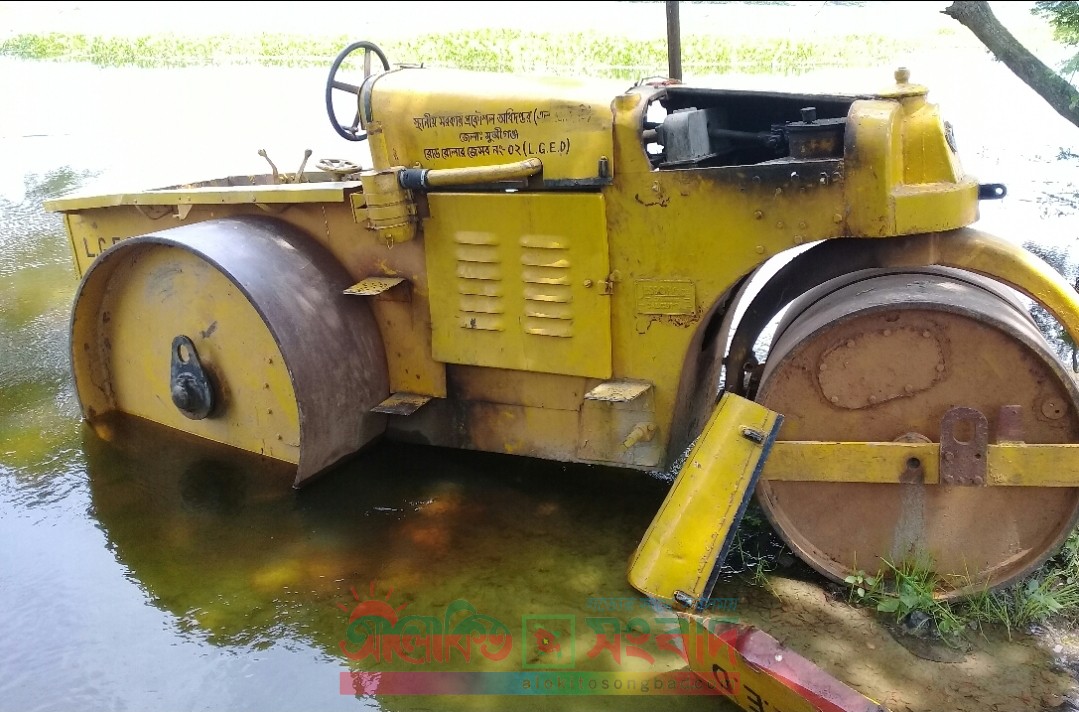 শ্রীনগরে পানিতে ডুবে নষ্ট হচ্ছে সরকারি রোলার