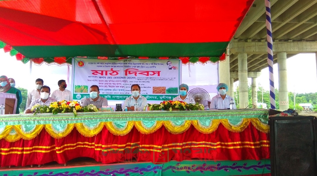 এমডি মাছুম,শ্রীনগরঃ মুন্সিগঞ্জের শ্রীনগর উপজেলার প্রায় পাচশ একর ফসলী জমির জলাবদ্ধতা নিরসনের দাবী জানিয়েছেন সাধারণ কৃষকরা । গত ১৭ জুন বুধবার দুপুর ১ টায় কামার খোলা নামক স্থানে কৃষি সম্প্রসারন অধিদপ্তর আয়োজিত মাঠ দিবসের অনুষ্ঠানে কৃষকদের পক্ষ থেকে এ দাবী জানিয়েছেন স্থানীয় কৃষক প্রতিনিধি মাসুম মেম্বার। তিনি বলেন, পদ্মাা সেতু রেল প্রকল্পের কালভার্টবিহীন সড়কের কারণে দোগাছি, কোলাপাড়া,শমষপুর কামারখোলা মুড়ুপাড়া, জুশুরগাও, কুশরীপাড়া, ভিকারিদেশ, শ্রীনগর , বেজগাও, হরপাড়া, ও ষোলঘড়সহ বহু চকের ফসলি জমি এখন জলাবদ্ধতার শিকার। এরফলে ঐসব এলাকার কৃষকরা চাষাবাদের অভাবে দিন দিন কর্মবিমুখ হয়ে পরছে। কৃষকদের এই অচলাবস্থা নিরসনকল্পে তারা কামারখোলা নামক স্থানে পদ্নাসেতু রেল প্রকল্পের সড়কে কালভার্ট- নির্মাণের জন্য জোরালো দাবী জানিয়েছেন। মাঠ দিবসের ঐ অনুষ্ঠানে কৃষকদের দাবির প্রক্ষীতে প্রধান অতিথির বক্তৃতায় কৃষি এসোসিয়েশনের প্রকল্প পরিচালক মোঃ মোয়াজ্জেম হোসেন বলেন, কৃষিবান্ধধ বর্তমান সরকার আপনাদের বিষয়ে অত্যন্ত উদার । তাই কৃষকরা যাতে পন্যের ন্যায্যমূল্য পায় , সেজন্য ধান, চাল ও পেঁয়াজ উৎপাদনের মৌসুমে সরকার এসব পন্যের আমদানি বন্ধ রাখে। তিনি কৃষকদেরকে আশ্বস্ত করে বলেন, আপনাদের দাবির কথা আমি সংশ্লিষ্ট কতৃপক্ষের কাছে তুলে ধরবো। উপজেলা কৃষি কর্মকর্তা জাহাঙ্গীর আলম এর সভাপতিত্বে অনুষ্ঠিত সভায় বিশেষ অতিথির বক্তব্য রাখেন শ্রীনগর উপজেলা চেয়ারম্যান মশিউর রহমান মামুন, আর বক্তব্য রাখেন,জেলা কৃষি সম্প্রসারন অধিদপ্তরের উপপরিচালক মোঃ শাহ আলম, পাটাভোগ ইউনিয়ন পরিষদের চেয়ারম্যান ফিরোজ আল মামুন, কৃষি সম্প্রসারন কর্মকর্তা জি এম রুনা লায়লা, উপসহকারী কৃষি কর্মকর্তা সুমন সরকার, মোঃ শহিদুল ইসলাম, ও নাঈম হোসেন প্রমুখ। অনুষ্ঠান শেষে ৫০ জন কৃষককে ৪০০ টাকা করে উৎসাহ প্রনোদনা দেয়া হয়।