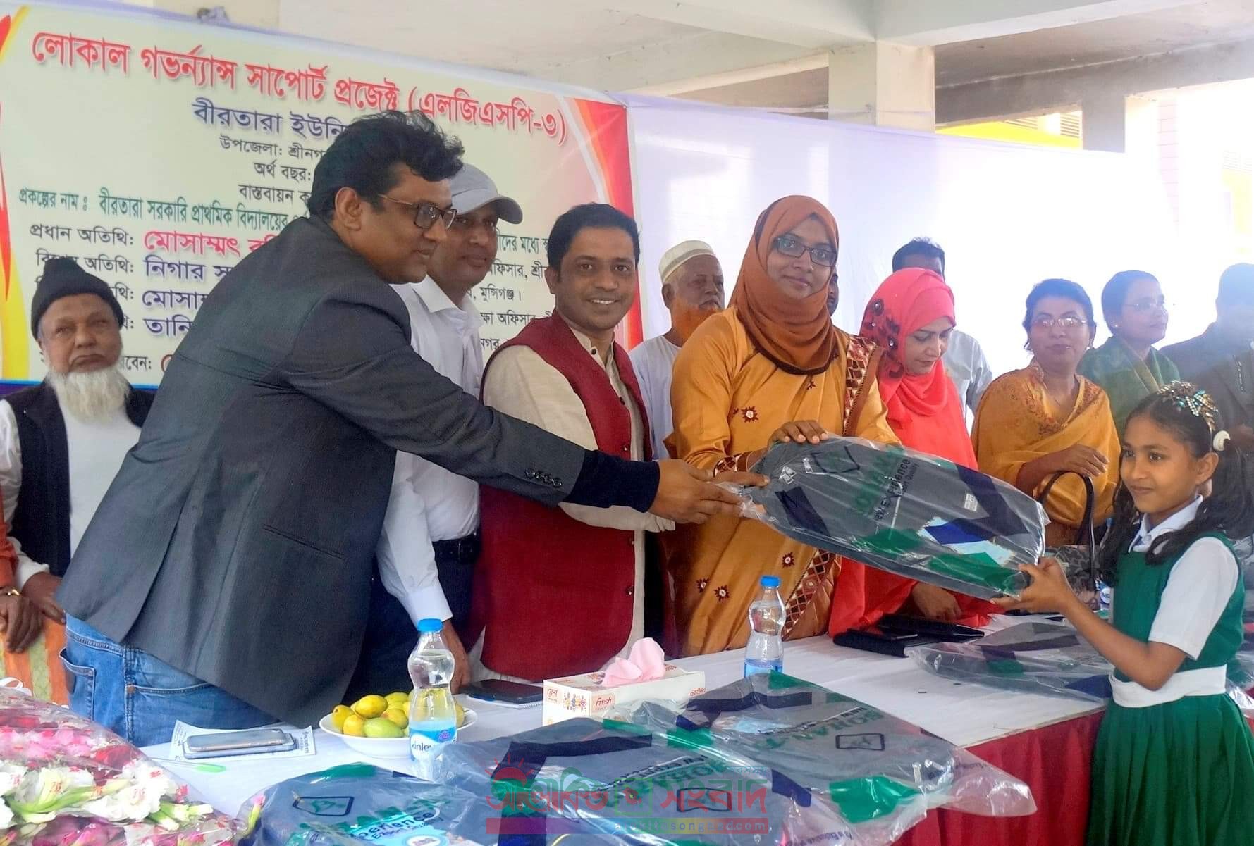 মাছুম তালুকদার, শ্রীনগর (মুন্সীগঞ্জ) প্রতিনিধি : মঙ্গলবার মধ্য দুপুর। শ্রীনগর উপজেলার বীরতারা সরকারী প্রাথমিক বিদ্যালয় চত্ত্বরে চতুর্থ ও পঞ্চম শ্রেণীর শতাধিক ছাত্র-ছাত্রী অধীর আগ্রহে অপেক্ষা করছে। লোকাল গভর্ন্যান্স সাপোর্ট প্রজেক্ট (এলজিএসপি-৩) এর আনুষ্ঠানিকতা শেষে শ্রীনগর উপজেলা নির্বাহী অফিসার মোসাম্মৎ রহিমা আক্তার প্রধান অতিথী হিসেবে তাদের হাতে উন্নত মানের স্কুল ব্যাগ তুলে দিচ্ছিলেন। ছাত্র-ছাত্রীরা ব্যাগ হাতে পেয়ে আত্মহারা হয়ে উঠে। চোখে-মুখে ফুটে উঠে খুশির ঝিলিক। এক অপরের ব্যাগ মিলিয়ে দেখছিল অনেক বার। কেউ কেউ ব্যাগ নিয়ে বুকের সাথে লেপটে ধরেছিল অনেকক্ষণ। এসময় প্রধান অতিথী (ইউএনও) ছাত্র-ছাত্রীদের সাথে খুশিতে শামিল হয়ে সবাইকে নিয়ে ছবি তুলেন।