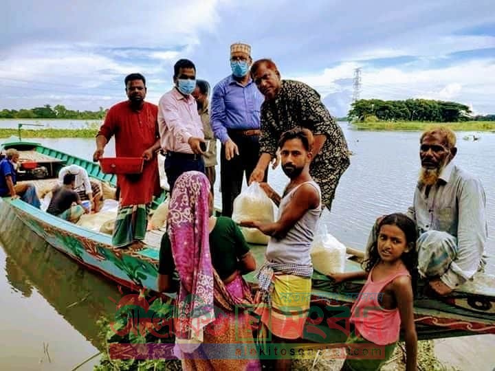 সিরাজদিখান (মুন্সিগঞ্জ) প্রতিনিধিঃ মুন্সিগঞ্জের সিরাজদিখানে বণ্যায় ক্ষতিগ্রস্ত ও পানি বন্দি অসহায় পরিবারের বাড়ীতে বাড়ীতে খাদ্য সহায়তা (সরকারী চাউল) পৌঁছে দিচ্ছেন রাজানগর ইউনিয়ন পরিষদের চেয়ারম্যান মো.কামাল হোসেন হাদী। গত বৃহস্পতিবার (৩০ জুলাই) দুপুরে ইউপি চেয়ারম্যান কামাল হোসেন হাদীর নেতৃত্বে ট্রলার যোগে রাজানগর ইউনিয়নের ১ ও ২ নং ওয়ার্ডের ১শ টি পরিবারের বাড়ীতে ১০ কেজি করে চাউল পৌঁছে দেওয়া হয়। এছাড়া শুক্রবার (৩১ জুলাই) বাদ জুম’আ ওই ইউনিয়নের ৩ ও ৪নং ওয়ার্ডের বণ্যায় ক্ষতিগ্রস্ত ও পানি বন্দি আরো ১শ টি পরিবারের বাড়ীতে ১০ কেজি করে চাউল পৌঁছে দেন তিনি। এসময় তার সাথে ছিলেন, উপজেলা মাধ্যমিক শিক্ষা অফিসের একাডেমিক সুপার ভাইজার মো.খোকন, রাজানগর ইউনিয়ন পরিষদের সচিব মো. গোলাম ফারুক, রাজানগর ১ নং ওয়ার্ড ইউপি সদস্য তৈয়ব আলী মৃধা, ২ নং ওয়ার্ড ইউপি সদস্য মান্নান বেপারী, ৩ নং ওয়ার্ড ইউপি সদস্য মো. আবুল কালাম, ও ৪ নং ওয়ার্ড ইউপি সদস্য মো. ইয়াকুব৷ জানা যায়, বণ্যায় ক্ষতিগ্রস্ত পরিবারের মাঝে খাদ্য সামগ্রী বিতরণ কার্যক্রম অব্যাহত থাকবে। এদিকে খাদ্য সামগ্রী পেয়ে ক্ষতিগ্রস্ত পরিবারের লোকজন বলেন, এর আগে কোন চেয়ারম্যানকে মানুষের বাড়ী বাড়ী গিয়ে চাল বিতরণ করতে দেখিনি। তিনি ভালো মানুষ বলেই আজকে আমাদের দূর্দিনে আমাদেরকে সাহায্যের হাত বাড়িয়ে দিচ্ছেন। আল্লাহপাক তার মঙ্গল করুক। রাজানগর ইউনিয়ন পরিষদের চেয়ারম্যান মো. কামাল হোসেন হাদী বলেন, মাননীয় প্রধানমন্ত্রী শেখ হাসিনার ক্ষুধা মুক্ত বাংলাদেশ গড়ার লক্ষ্যে গরীব ও অসহায় মানুষের জন্য তার পাঠানো ত্রান সামগ্রী পৌঁছে দেয়া আমার দায়ীত্ব। চেয়ারম্যান হিসেবে শুধু ভোটের জন্য মানুষের দুয়ারে গেলে চলবে না। মানুষের সুখ দুঃখেও তাদের পাশে গিয়ে দাড়াতে হবে। আমার ইউনিয়নে যারা অসহায় ও বণ্যায় ক্ষতিগ্রস্ত আছে আমি তাদের সকলের খোঁজ খবর নিয়ে খাদ্য সামগ্রী পৌঁছে দেয়ার চেষ্টা চালিয়ে যাচ্ছি