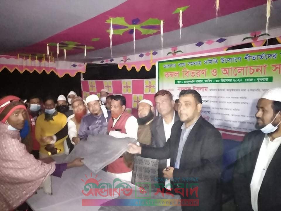 সিরাজদিখান (মুন্সীগঞ্জ) প্রতিনিধি: মুন্সীগঞ্জের সিরাজদিখানে ২শতাধিক কম্বল বিতরণ করা হয়েছে। গতকাল বুধবার বিকেল ৫টায় উপজেলার লতব্দী ইউনিয়নের রামকৃষ্ণদি বাজার মাঠ থেকে এই কম্বল বিতরণ করা হয়। আলোর পথে সমবায় সমিতির উদ্যোগে স্বাস্থ্য বিধি মেনে গরিব অসহায় ও শীতার্ত মানুষের মাঝে এই কম্বল বিতরন করা হয়। কম্বল বিতরণ শেষে আলোচনা সভা করা হয়। সভায় সমিতির সহ-সভাপতি গোলাম মোস্তফা মিন্টুর সভাপতিত্বে প্রধান অতিথি হিসেবে উপস্থিত ছিলেন সমিতির সভাপতি ও আড়াইহাজার থানার অফিসার ইনচার্জ নজরুল ইসলাম। সমিতির সহ-সাধারণ সম্পাদক মোঃ আমিনুল ইসলামের সঞ্চালনায় বিশেষ অতিথি হিসেবে উপস্থিত ছিলেন আলোরপথে সমবায় সমিতির সাধারন সম্পাদক মোঃ শাহ আলী, উপদেষ্টা মোঃ মাহাবুব হোসেন, কোষাধ্যক্ষ এস.কে শামীম, সাংঠনিক সম্পাদক মোঃ জহিরুল ইসলাম প্রমুখ।