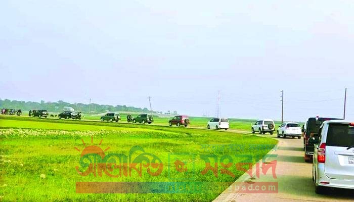 হাওরেও গাড়ি চলে সারি সারি