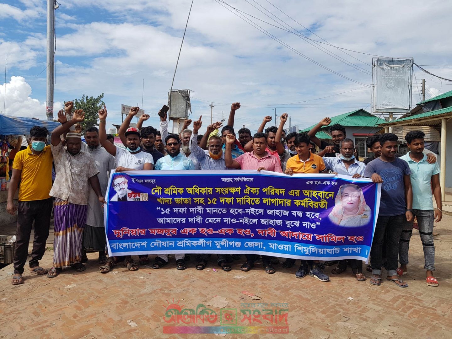 মুন্সীগঞ্জ জেলা নৌযান শ্রমিকলীগের সভাপতি আবুল হাসেম খানের নেতৃত্বে জেলার সকল পণ্যবাহী নৌযানের কর্মবিরতি পালনসহ বিক্ষোভ ও মিছিল করেন। এসময় নৌযান শ্রমিক অধিকার সংরক্ষণ ঐক্য পরিষদের আহবানে খাদ্য ভাতাসহ ১৫ দফা দাবিতে লাগাতার কর্মবিরতি পালন করেন নৌযান শ্রমিকলীগের কর্মীরা।‘‘১৫ দফা দাবি মানতে হবে- নইলে জাহাজ বন্ধ হবে, আমাদের দাবি মেনে নাও- নইলে জাহাজ বুঝে নাও”। দুনিয়ার মজদুর এক হও- এক হও, দাবি আদায় সামিল হও- এ স্লোগানকে সামনে রেখে বিক্ষোভ ও মিছিল করেছেন। পরে তারা কর্মবিরতিতে যান।বিক্ষোভ মিছিলে উপস্থিত ছিলেন জেলা নৌযান শ্রমিকলীগের সহ-সভাপতি জুয়েল শিকদার বাবু, সাধারণ সম্পাদক জহির ফকির, যুগ্ম-সাধারণ সম্পাদক রফিক মাদবর, সাংগঠনিক সম্পাদক শিপন বেপারী, সহ-সাংগঠনিক সম্পাদক ফারুক আহমেদ খালাসী প্রমুখ। এ সময় মিছিলকারীরা শিমুলিয়া ঘাটের সিবোট ঘাট ও লঞ্চঘাটে স্লোগানসহ বিক্ষোভ করেছেন।