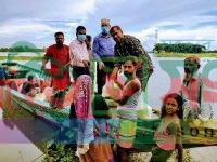 বণ্যায় ক্ষতিগ্রস্ত ও পানি বন্দি মানুষের বাড়ীতে খাদ্য সহায়তা পৌঁছে দিচ্ছেন ইউপি চেয়ারম্যান